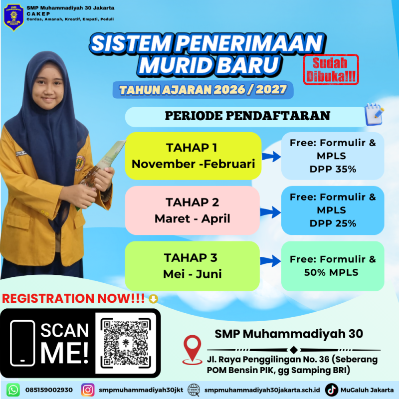 Mari bergabung bersama keluarga besar SMP Muhammadiyah, tempat di mana ilmu ditanamkan, karakter dibentuk, dan masa depan dirancang dengan penuh harapan.